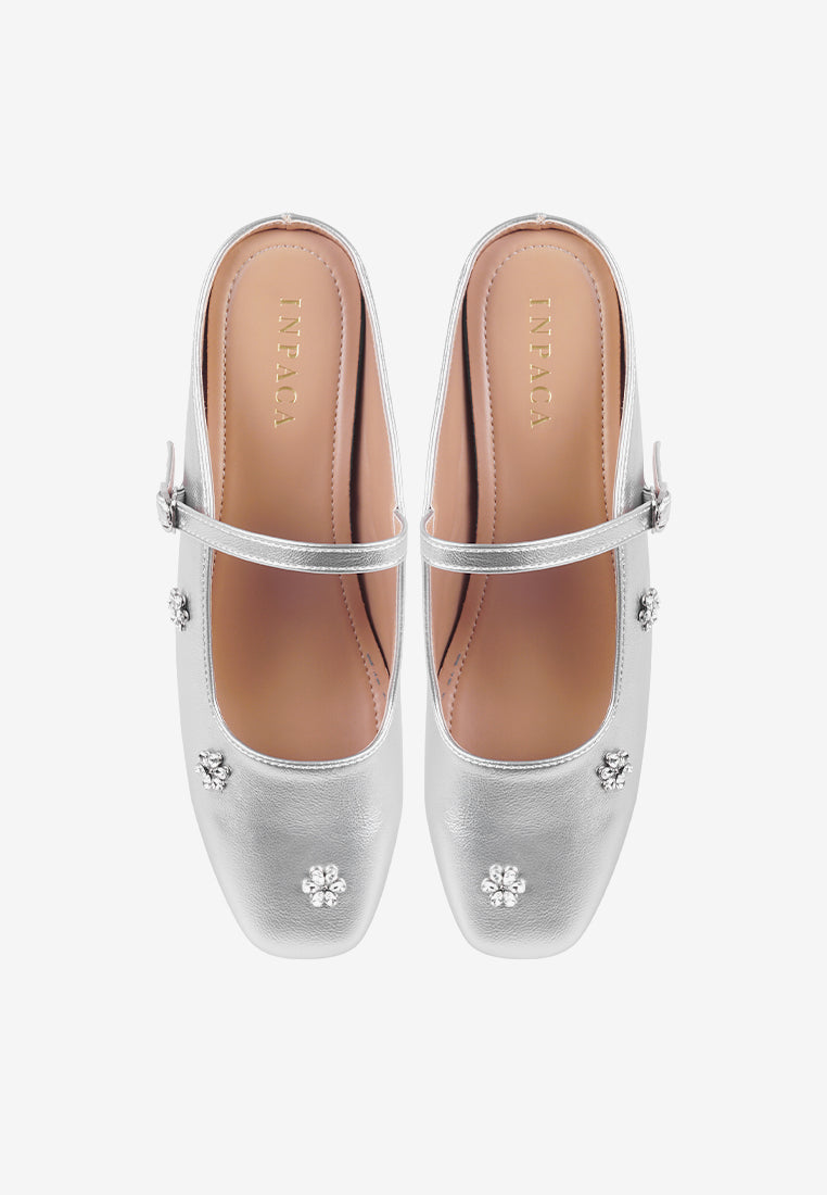 Amber mary jane mule designed with sparkling floral rhinestone accents for a feminine and luxurious finish. They offer comfort, easy to use, and sophistication in one stylish pair.