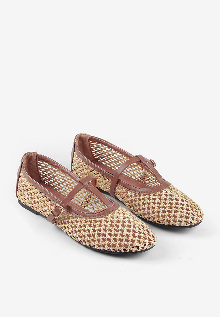 Aria Natural Woven Mary Jane Flat Shoes Summer Slip On