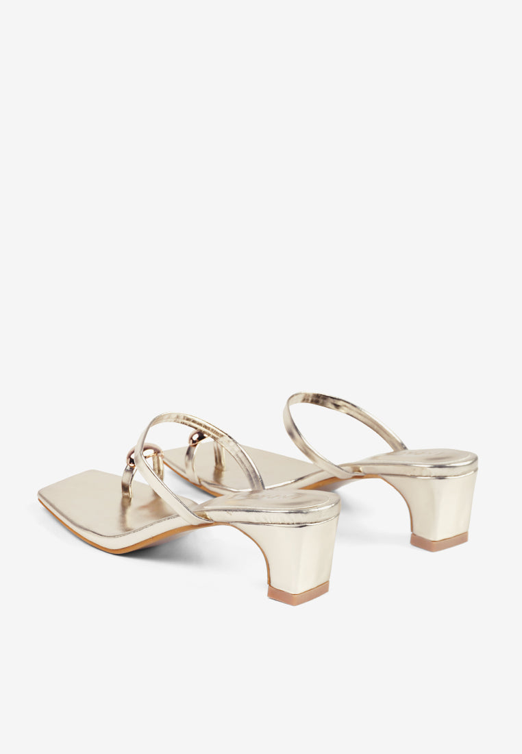 Elevate your style with these Metallic Toe-Ring Heeled Sandals, designed to make a bold and sophisticated fashion statement. Featuring a sleek metallic finish and a modern statemen toe accessories, this pair brings a glamorous touch to any outfit — from casual chic to evening wear.
